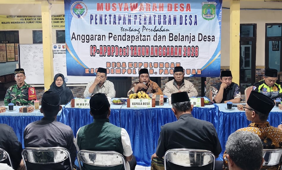 3 minggu yang laluPasuruan - Pemerintah Desa (Pemdes) Kepulungan, Kecamatan Gempol, Kabupaten Pasuruan, menggelar Musyawarah Desa (Musdes) terkait Penetapan Perubahan APBDes Tahun 2026, Sabtu (7/3/2026).